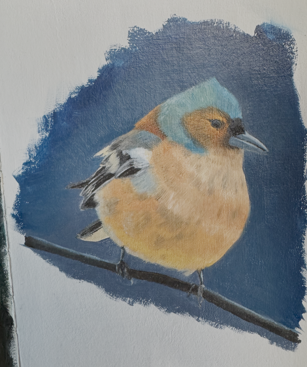 From my sketchbook: Common Chaffinch - My first attempt at painting a bird in oil.
